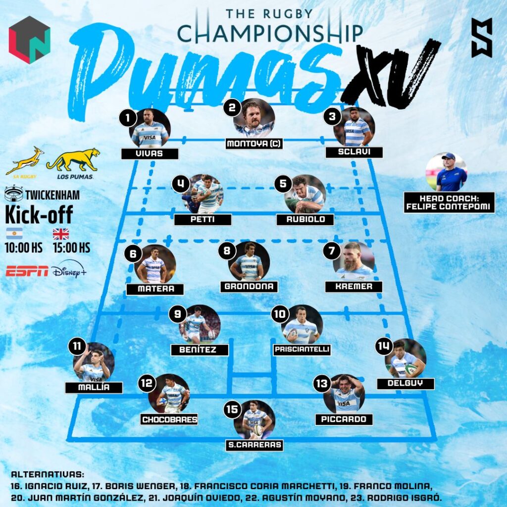 Por la última fecha del Rugby Championship, Los Pumas se medirán ante Sudáfrica en Twickenham, con la baja de un jugador a último momento: Joel Sclavi no podrá estar ante los Springboks. Desde las 10 por Disney+.